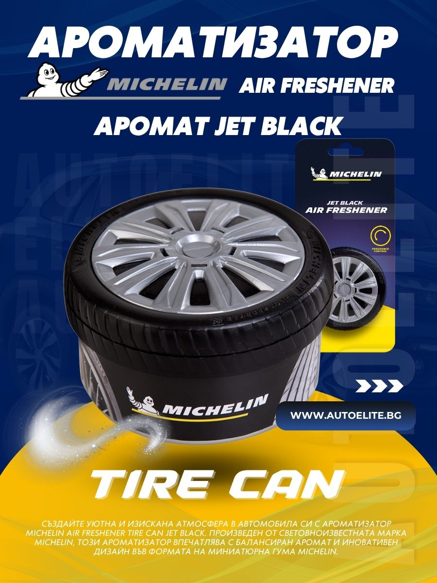 Внесете елегантност и мъжествен аромат във вашия автомобил! Поръчайте ароматизатор Michelin Air Freshener Tire Can Jet Black (Код 87817) още днес от AutoElite.bg и се насладете на безупречна атмосфера при всяко пътуване!