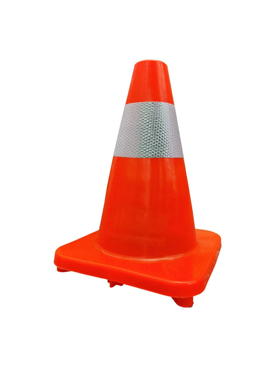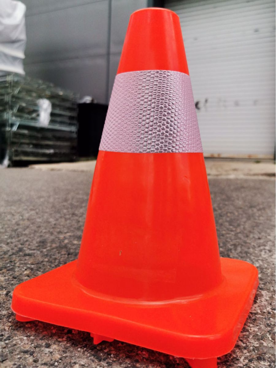 Изработен от устойчива PVC пластмаса, конусът е лек, но стабилен. Цветовото съчетание от ярко оранжево тяло и бяла светлоотразителна лента осигурява отлична видимост през деня и нощта. Формата му позволява лесно подреждане и пренасяне, което го прави изключително практичен за мобилни приложения и ограничено пространство.