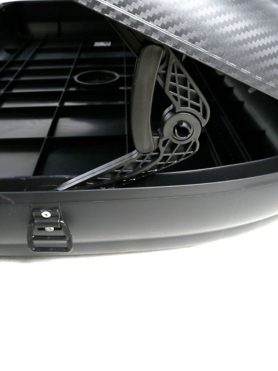 Универсален автобокс с обем 320 литра и карбонова визия – идеален за пътувания, ваканции и спортна екипировка. Съвместим с всички автомобили с напречни греди до 80 мм.
