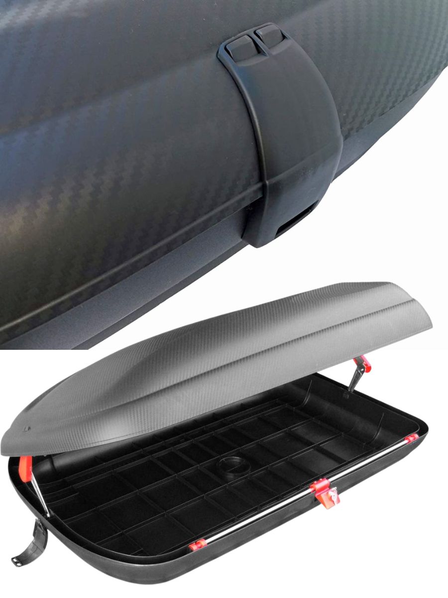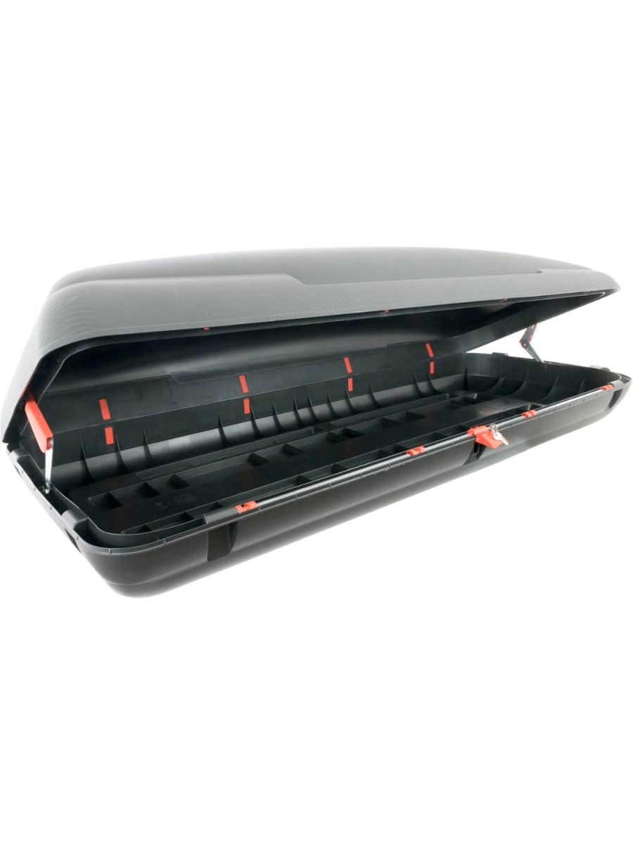 Черният карбонов цвят придава на кутията модерен и спортен външен вид, който се съчетава чудесно както с по-нови, така и с по-стари модели автомобили. Отворът на кутията е голям и удобен, а подобрените панти гарантират лесно и плавно отваряне и затваряне. Заключващият механизъм е с ключ и е специално преработен през 2023 г., за да осигури по-висока степен на сигурност. Дръжките също са обновени в черен цвят за по-добро съчетание с карбоновата повърхност.