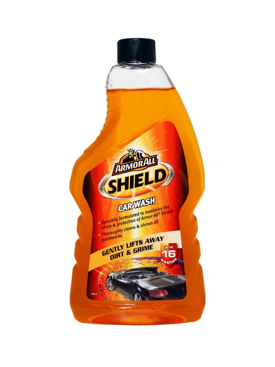Armor All Shield Car Wash 520 ml е високоефективен шампоан, който съчетава почистващи и защитни свойства. Формулата създава обилна пяна, която внимателно отстранява пътния филм, мръсотия и замърсявания, докато восъчните компоненти оставят защитен слой, отблъскващ вода и мръсотия. Безопасен за всички автомобилни покрития, включително прозрачни покрития, шампоанът не оставя сапунени остатъци и поддържа блясъка на боята. Една бутилка позволява до 16 измивания, което го прави икономичен избор за редовна поддръжка. При многократна употреба защитната бариера на Armor All Shield се усилва, увеличавайки блясъка и защитата с всяко измиване.
