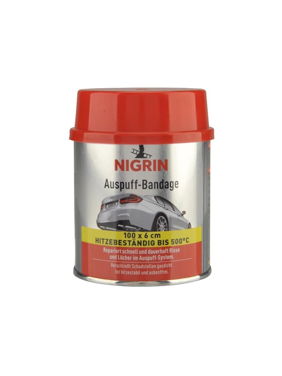 NIGRIN Auspuff-Bandage 200 г / 100 см представлява комплект за бърз и траен ремонт на пукнатини и отвори в изпускателната система. Създаден за висока ефективност и устойчивост, продуктът комбинира специален термоустойчив бандаж и високотемпературна паста, които осигуряват газонепропускливо и стабилно уплътнение на всички зони от ауспуха – включително заглушителя, изпускателния колектор и свързващите тръби