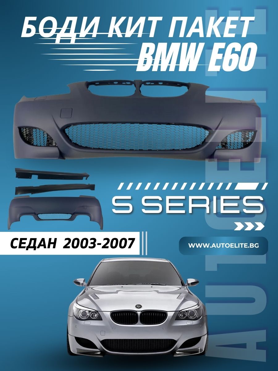 - Пълен тунинг комплект с M5 визия за седан версия на BMW E60 (2003–2007)