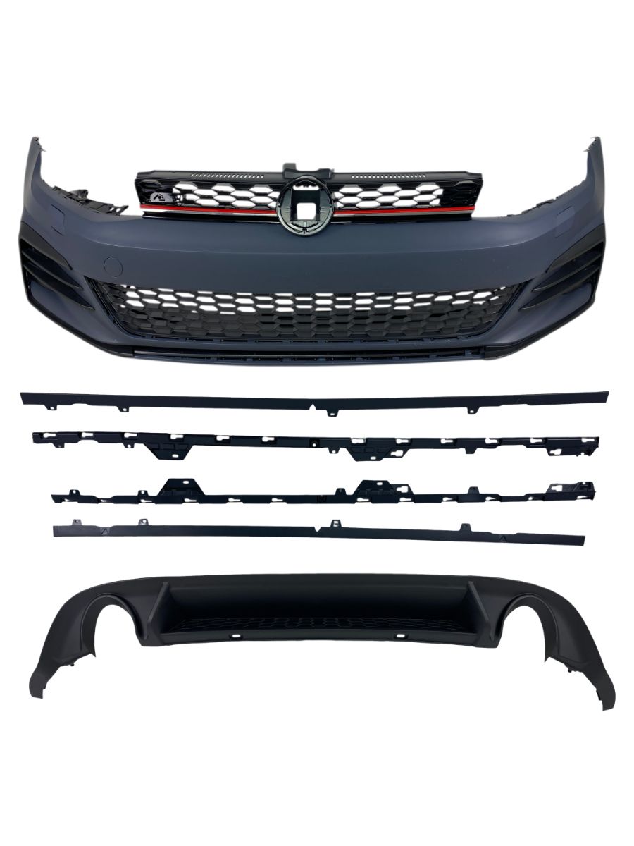 Този Body Kit пакет за VW Golf 7 GTI включва предна броня, заден дифузьор, странични прагове, предна решетка и LED халогени. Всеки детайл е прецизно създаден, за да пасва перфектно на модела Golf 7 (2014-2017), без да са необходими сериозни модификации.