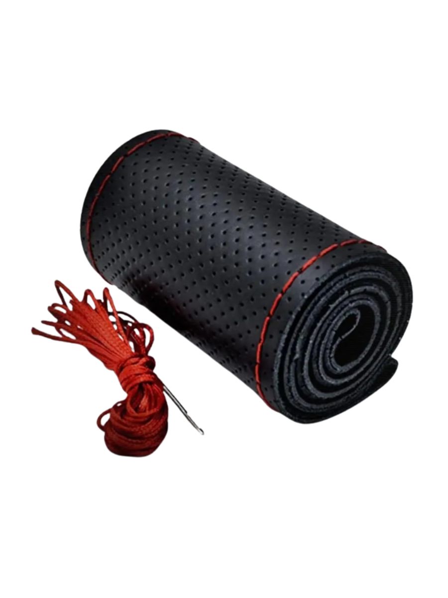 Коженият калъф за волан в черно с червен шев е комбинация от спортна визия, издръжливост и удобство при шофиране. Създаден е от висококачествена перфорирана еко кожа, която позволява проветривост и предотвратява изпотяване на ръцете. Яркият червен шев придава динамичен и спортен облик, а ръчното пришиване гарантира сигурно и плътно прилепване към повърхността на волана. Този модел е съвместим както с кръгли, така и с D-образни волани, което го прави универсален избор за голям набор от автомобили.