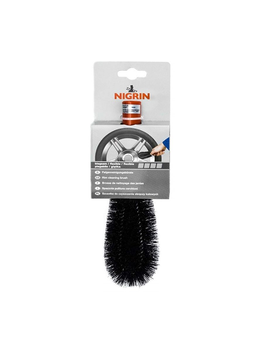 NIGRIN четка за джанти – кръгла е специално разработен аксесоар за прецизно и безопасно почистване на джанти, особено в зони, които трудно се достигат с обикновена гъба. С иновативната си кръгла форма и гъвкави влакна, четката ефективно премахва спирачен прах, кал, пясък и пътни замърсявания, без да надрасква чувствителните повърхности на алуминиеви, хромирани или боядисани джанти.
