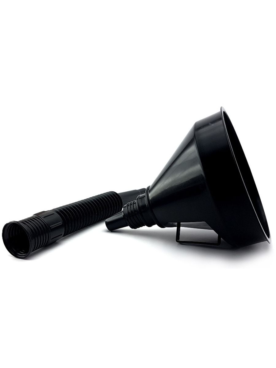 Изработена от устойчив пластмасов материал, фунията е съвместима с различни типове резервоари и отвори. Формата ѝ е проектирана така, че да осигурява стабилно позициониране и равномерен поток, независимо от вида на наливаната течност.