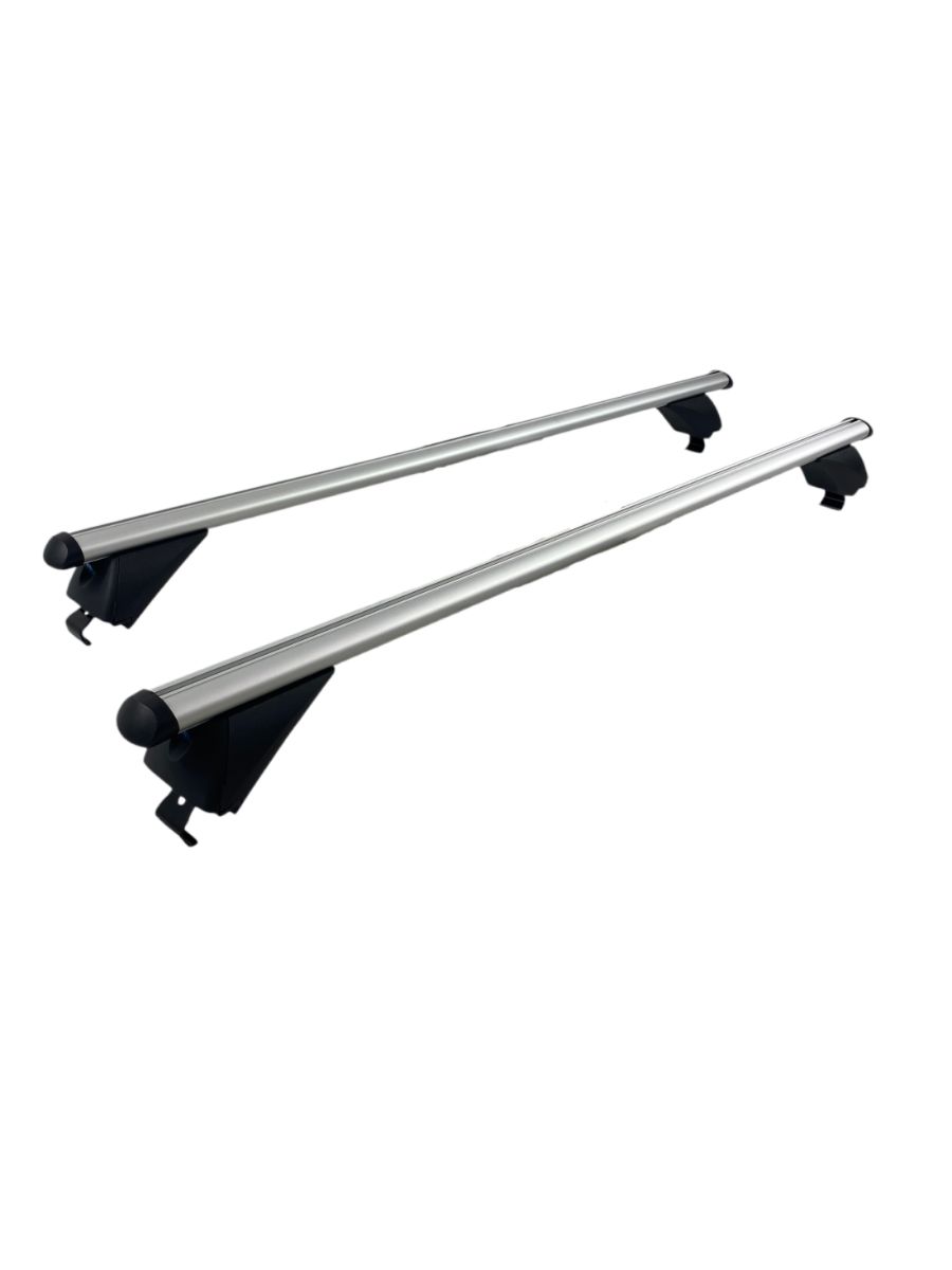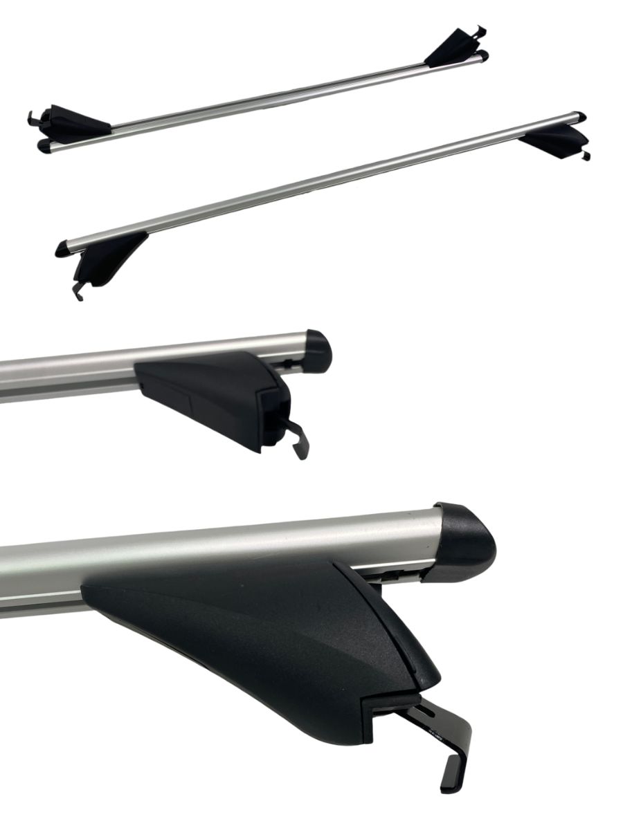 Универсалните алуминиеви напречни греди за багажник с дължина 120 см са перфектното решение за автомобили с вградени надлъжни релси без отвор между тавана и самата релса.