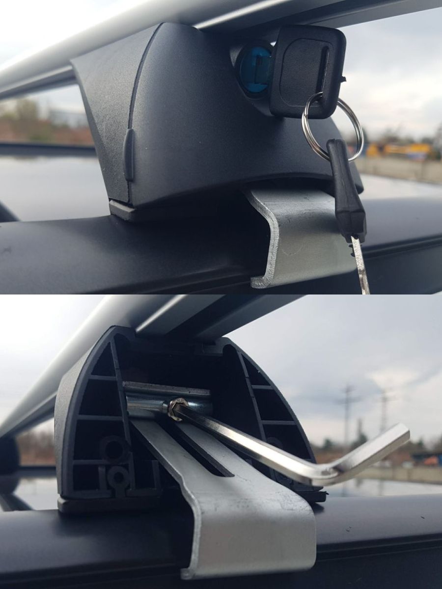 Греди напречни 120см за багажник за кола - за вградени покривни релси без отвор с ключ