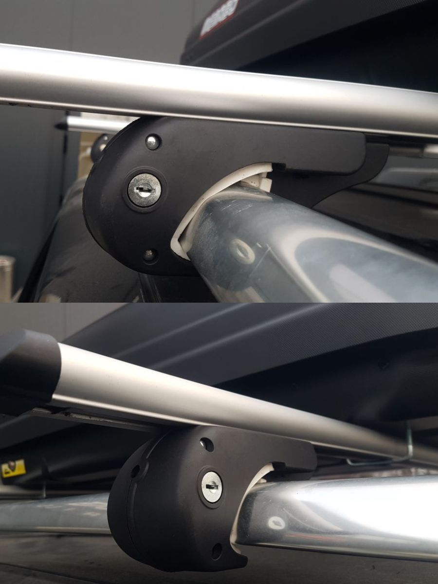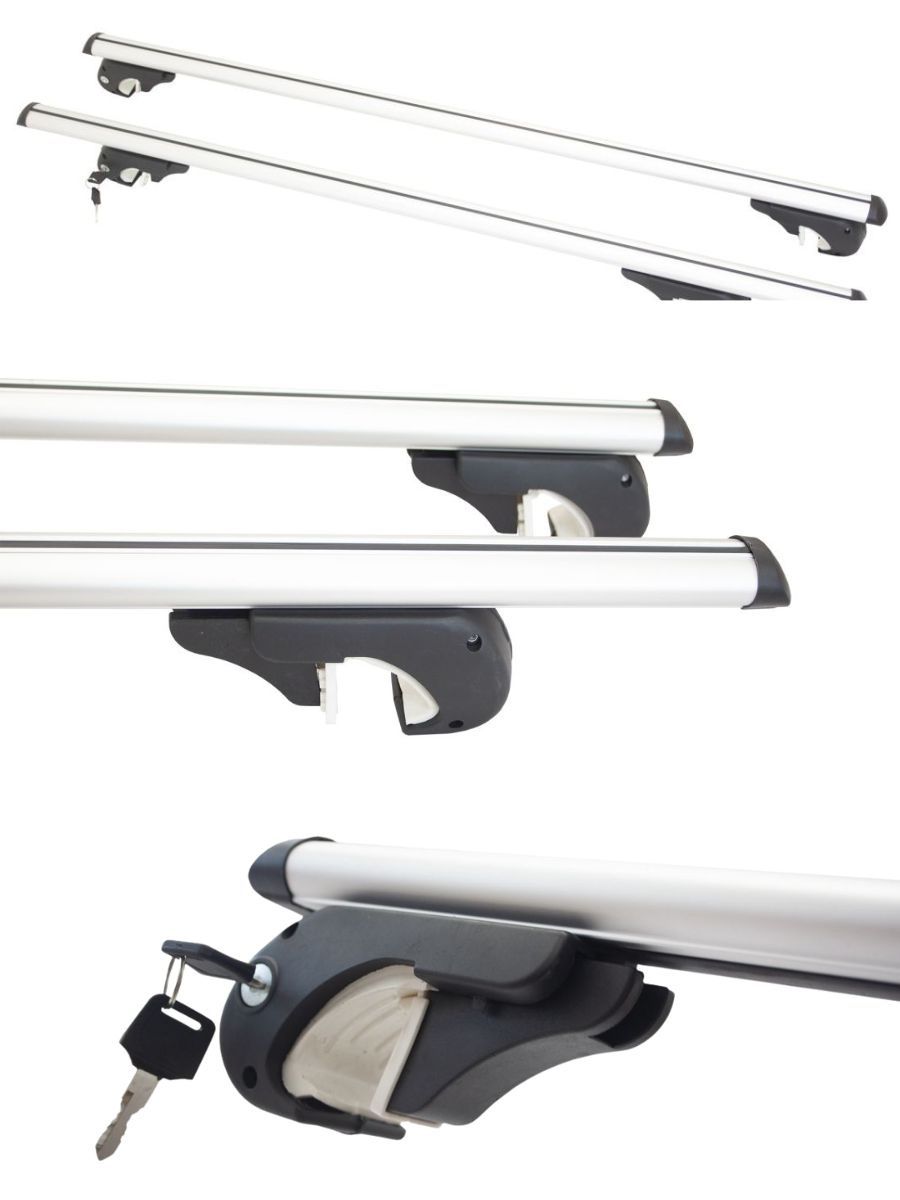 Напречни алуминиеви греди за багажник – 130 см, с ключ, за фабрични надлъжни релси с отвор