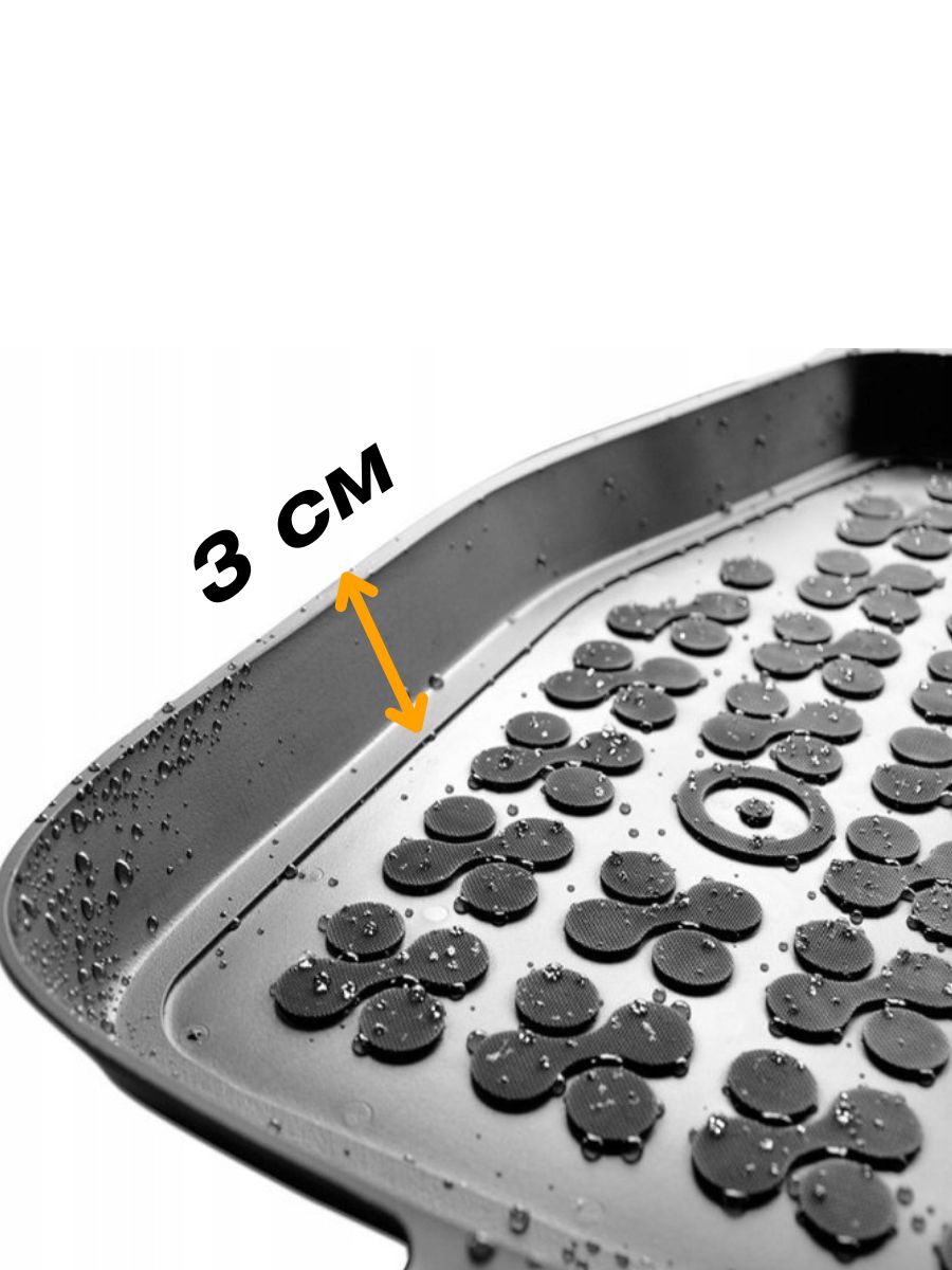 - Повдигнат ръб тип „леген“ (около 3 см), който задържа вода и замърсявания.