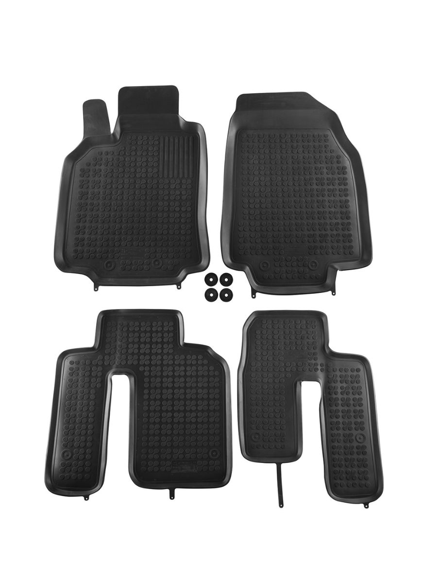 За допълнителна сигурност предните стелки са оборудвани с фабрични отвори и щипки за прикрепяне към фиксиращите точки на пода. Тази система предотвратява разместването и плъзгането напред, особено в зоната на педалите, и по този начин повишава безопасността при шофиране. Задните стелки са оформени така, че да покриват равномерно пространството под краката на пътниците и да блокират преминаването на влага към средния тунел и праговете.