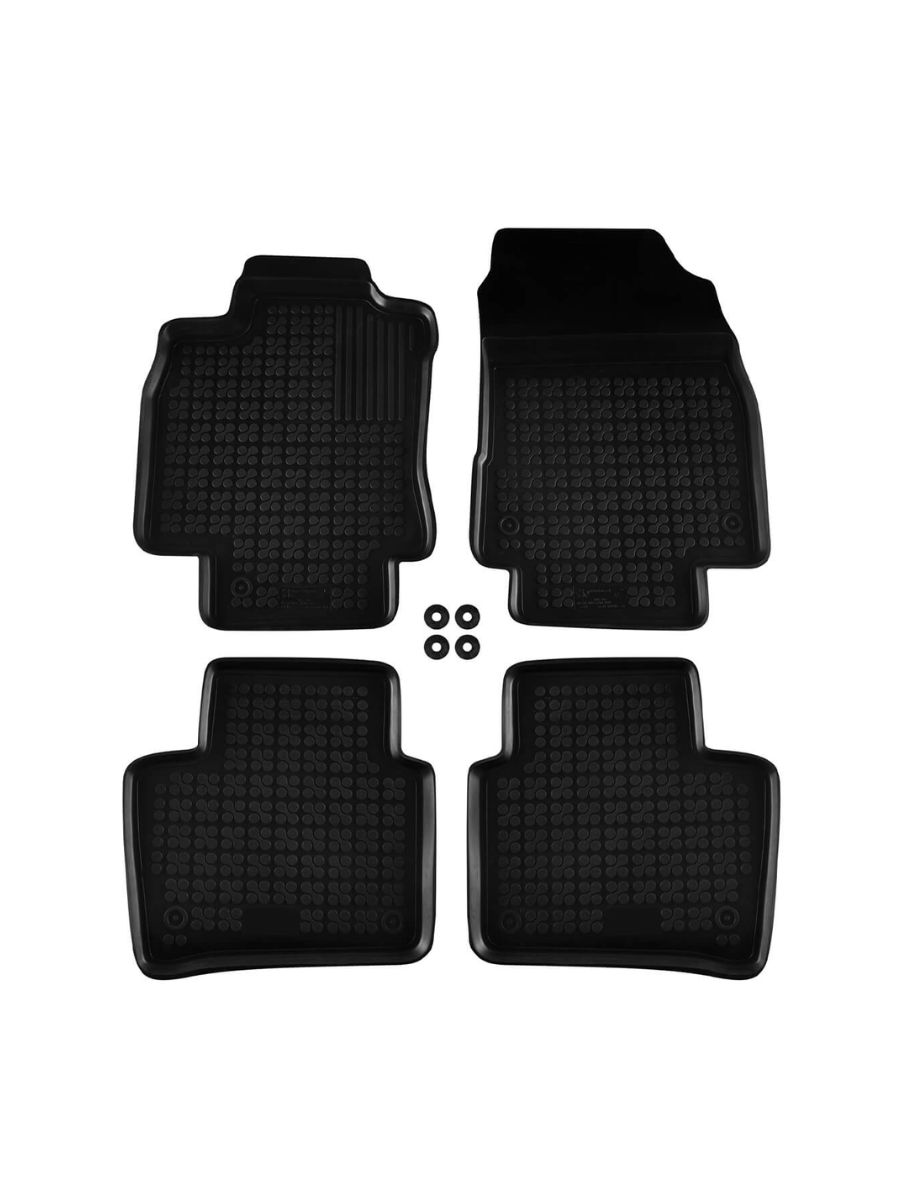 Предните стелки разполагат с отвори и щипки за надеждно закрепване към фиксиращите точки на пода, което предотвратява разместването им по време на шофиране и осигурява безопасност при натискане на педалите. Задните стелки са оформени така, че да покриват равномерно пространството под краката на пътниците и да блокират преминаването на мръсотия и течности към средния тунел и праговете.