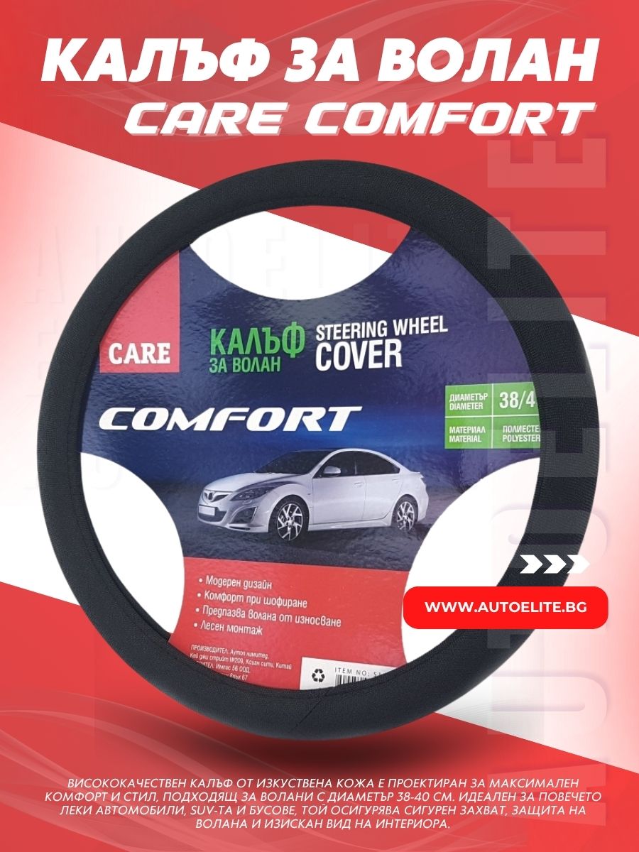 Обновете волана си с Care Comfort и шофирайте с удоволствие! Поръчайте сега от AutoElite.bg и се възползвайте от бърза доставка и гарантирано качество. Купи сега и направете всяко пътуване по-удобно и стилно!