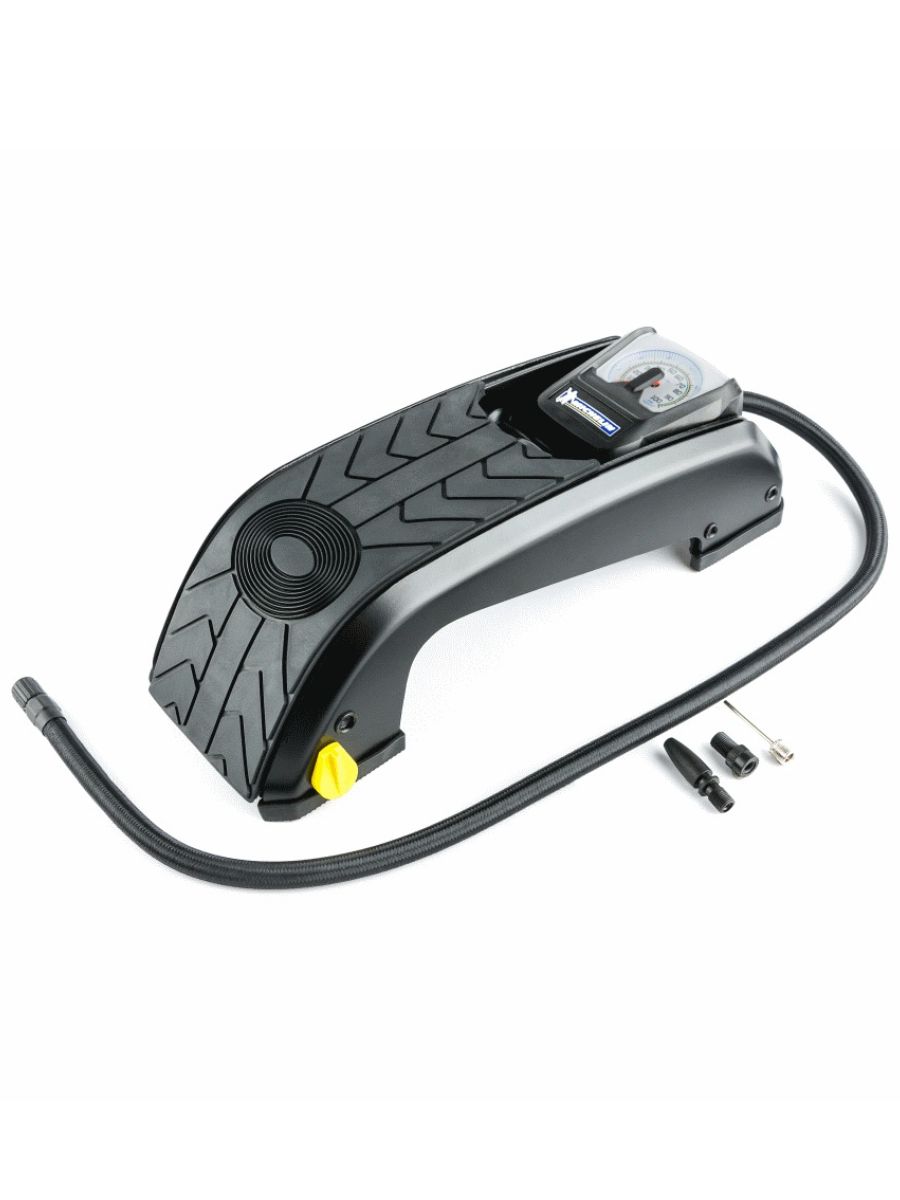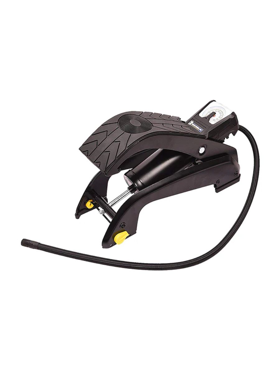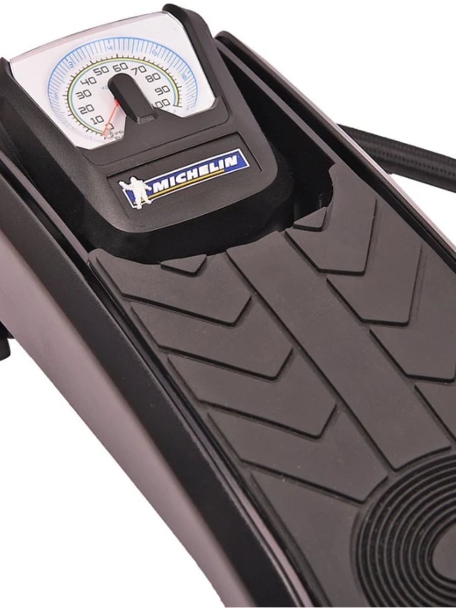 Крачна помпа с един цилиндър Michelin Analogue Single Barrel Foot Pump е проектирана за универсална употреба, подходяща за автомобилни, мотоциклетни и велосипедни гуми, както и за надуваеми играчки, гумени лодки, матраци и други. С максимално налягане от 7 бара (100 PSI), тя осигурява мощно и ефективно напомпване. Помпата разполага с точен аналогов манометър, измерващ в BAR и PSI, за прецизен контрол на налягането.