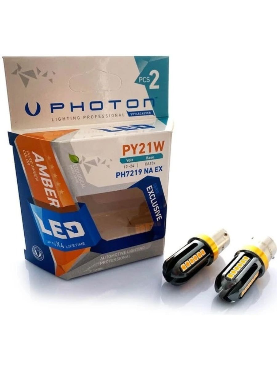 Комплектът от 2 броя LED крушки 24 SMD BA15S (P21W) 12V - 24V с жълта/оранжева светлина от серията Photon EXCLUSIVE представлява иновативно осветително решение, проектирано за максимална ефективност, дълготрайност и стил.