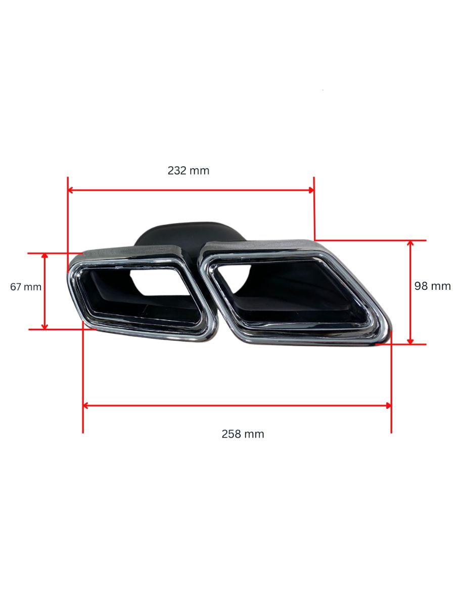 Изработени от висококачествена неръждаема стомана и съобразени с формата и линиите на оригиналния AMG S63 дизайн, накрайниците се монтират лесно и без нужда от заваряване. С ширина от 25 см и вход с диаметър 60 мм, те са съвместими с широка гама от ауспухови системи и осигуряват стабилност и надеждност при високи температури и интензивна експлоатация.