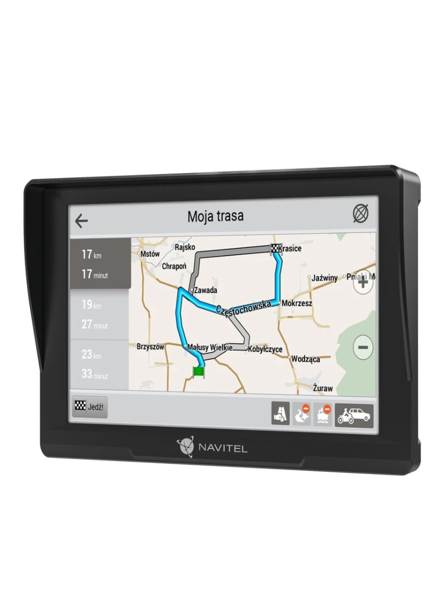NAVITEL E777 TRUCK е GPS навигация, проектирана специално за тежкотоварни превозни средства. Базирана на надеждната Linux операционна система, тя осигурява стабилна и бърза работа по време на всяко пътуване. Устройството позволява планиране на маршрути с неограничен брой междинни точки, като търсенето е достъпно по адрес или чрез база данни с полезни обекти като бензиностанции, банки, кафенета и забележителности.