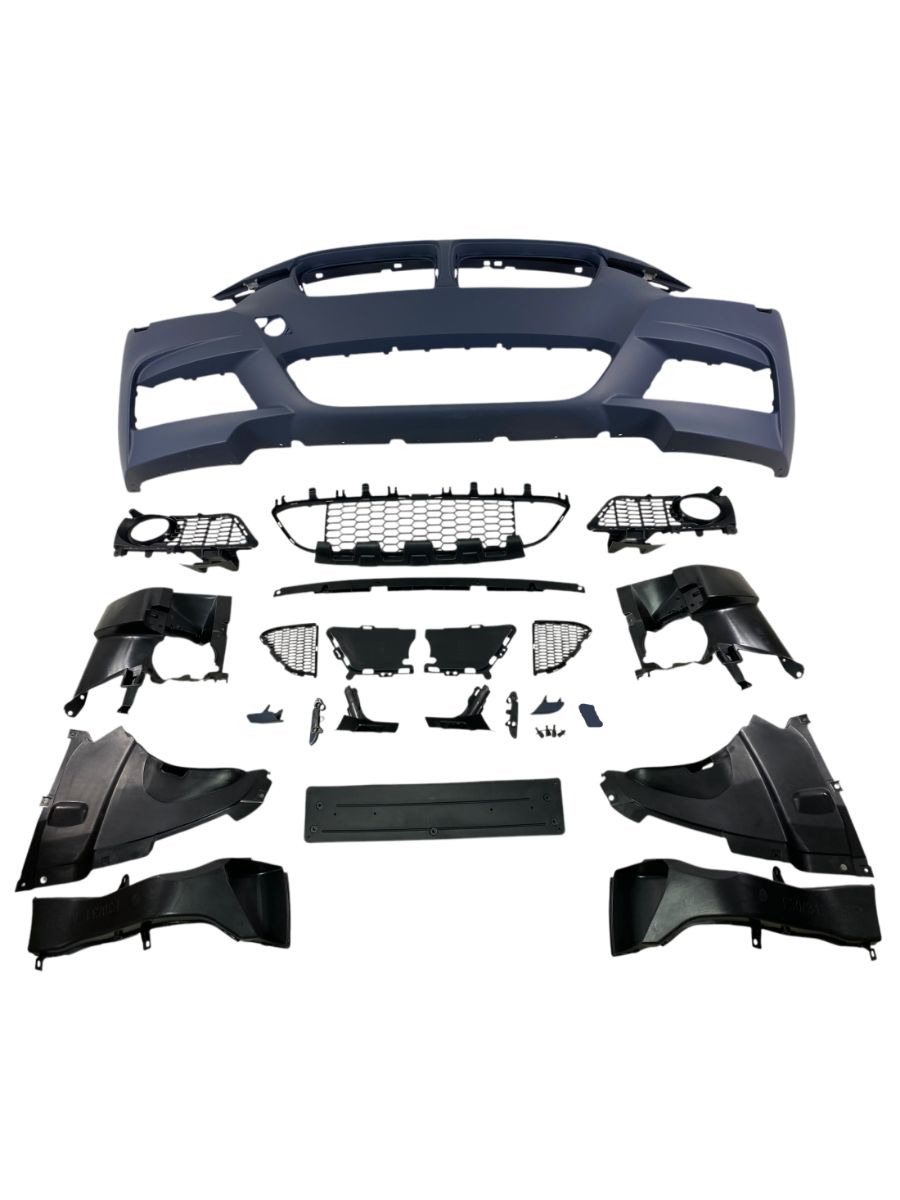 Тази M-Tech предна броня е подходяща за всички стандартни версии на BMW F30 – от базовите дизелови модели до по-спортните варианти. Дизайнът е вдъхновен от оригиналния M-Tech пакет, но с акцент върху агресивната предна част и отворите за халогени. Макар и без фабрично пробити отвори за парктроник, маркировките за тях правят инсталацията бърза и лесна при нужда.