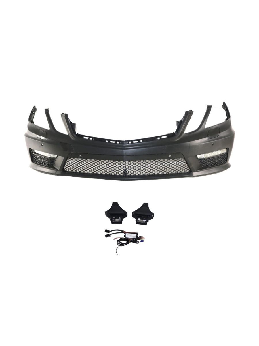 Предна броня за Mercedes W212 E-Class (2009-2012) – AMG стил с отвори за парктроник и LED дневни светлини