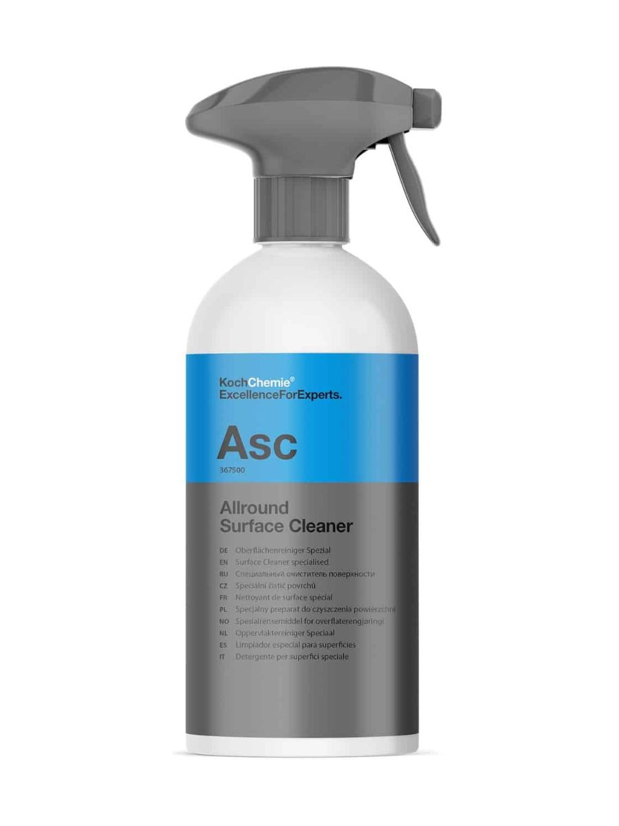 Allround Surface Cleaner (ASC) е иновативен почистващ препарат, създаден за незабавно действие върху всички гладки и чувствителни повърхности. Продуктът е готов за употреба и не изисква разреждане, което го прави изключително удобен за ежедневна употреба. Изпарява се бързо, без да оставя ивици или следи, и не уврежда повърхността – независимо дали става дума за пластмаса, стъкло, метал, екран, пиано лак или алуминий.
