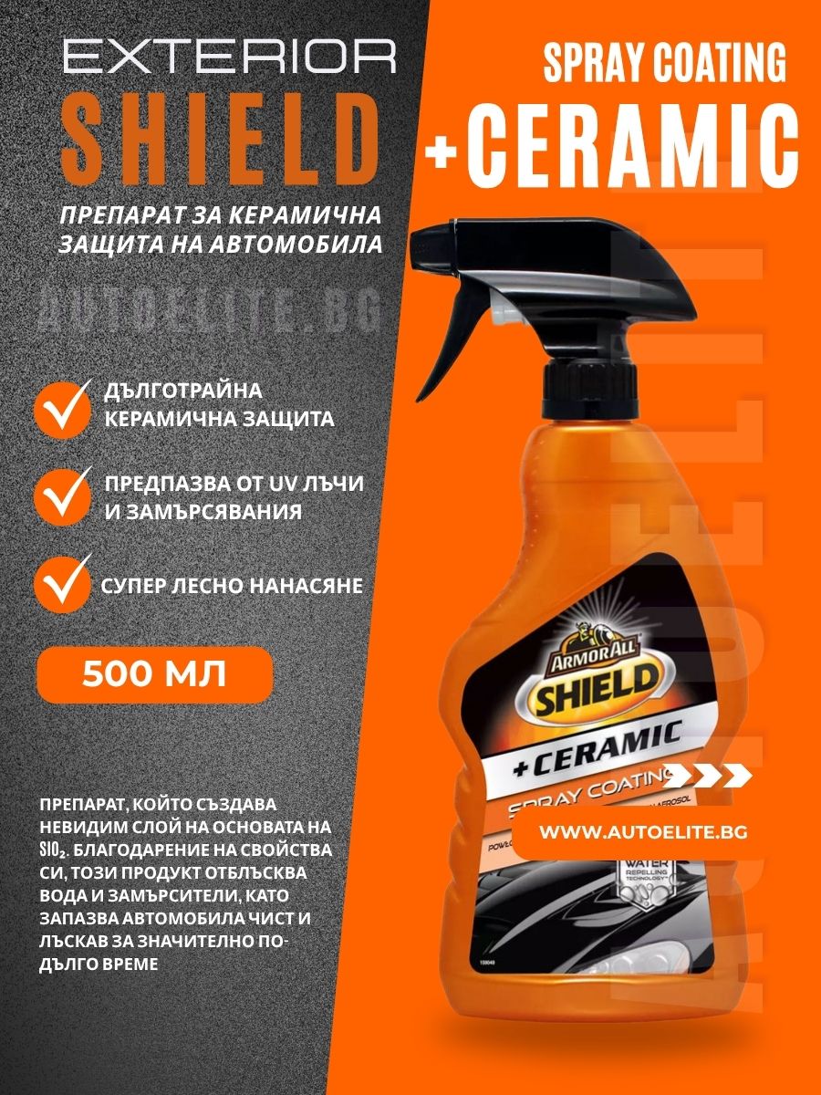 ArmorAll Shield+ Ceramic 500 мл е високотехнологичен препарат за керамична защита на автомобила, който създава невидим слой на основата на SiO₂.