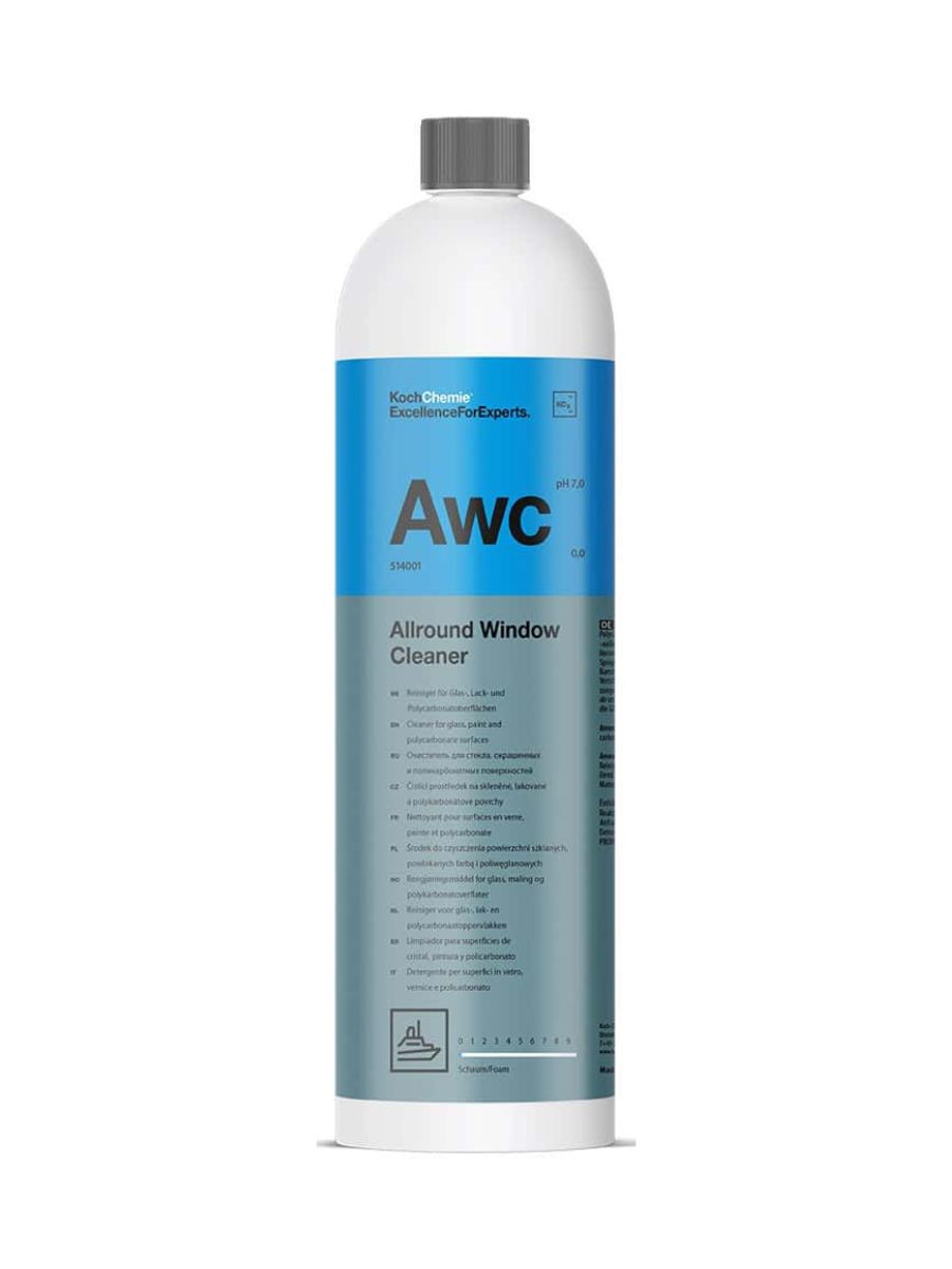 Allround Window Cleaner от Koch Chemie е високоефективен, бързосъхнещ препарат, специално създаден за професионално почистване на стъклени, боядисани и чувствителни поликарбонатни повърхности. С формула, разработена в Германия, той гарантира безупречно чисти повърхности без ивици, замъглявания и следи от препарат. Независимо дали се използва върху автомобилни стъкла, витрини, огледала или интериорни гланцови повърхности – резултатът винаги е кристален блясък.