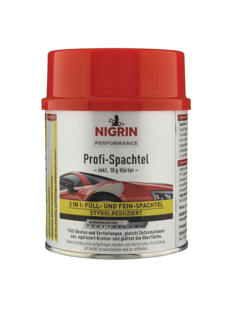 NIGRIN Profi е лесен за употреба и подходящ както за подготовка на нови повърхности, така и за възстановяване на вече повредени зони по каросерията. Благодарение на универсалната си формула тип "2 в 1", спестявате време и усилия, без компромис с качеството на крайния резултат.