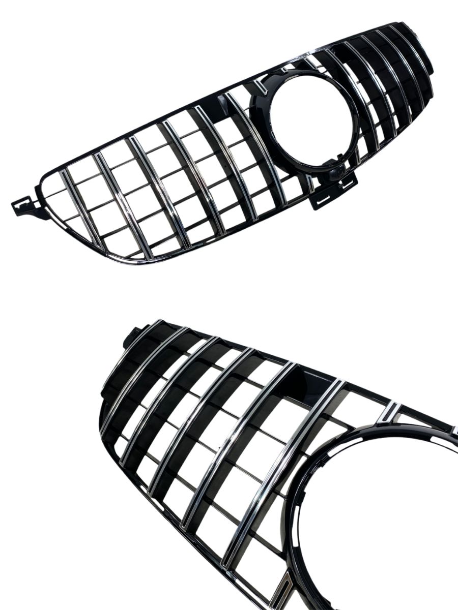 GT решетка за Mercedes GLE W166 SUV и C292 Coupe (2015-2019) е един от най-търсените тунинг аксесоари за собственици на Mercedes, които искат да придадат на автомобила си още по-елегантна и спортна визия. Съчетанието на хром и черно придава премиум излъчване, което подчертава луксозния характер на модела. Тази решетка е проектирана да се впише перфектно в предната част на автомобила, заменяйки стандартната без нужда от сериозни модификации.