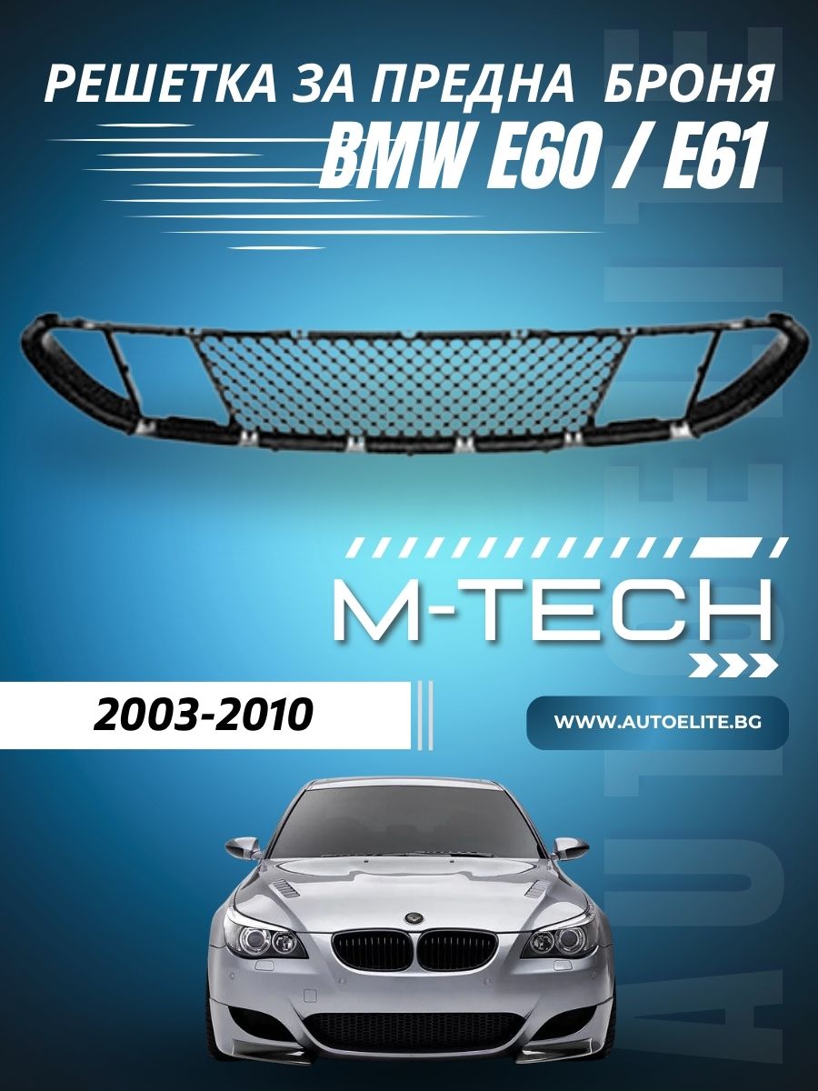 Централната решетка за предна броня с M-Tech дизайн е предназначена за спортните модификации на 5-та серия BMW E60 и E61. Визията ѝ отговаря на агресивния стил на M-пакета, като същевременно изпълнява своята функционална роля по защита и охлаждане на двигателя.