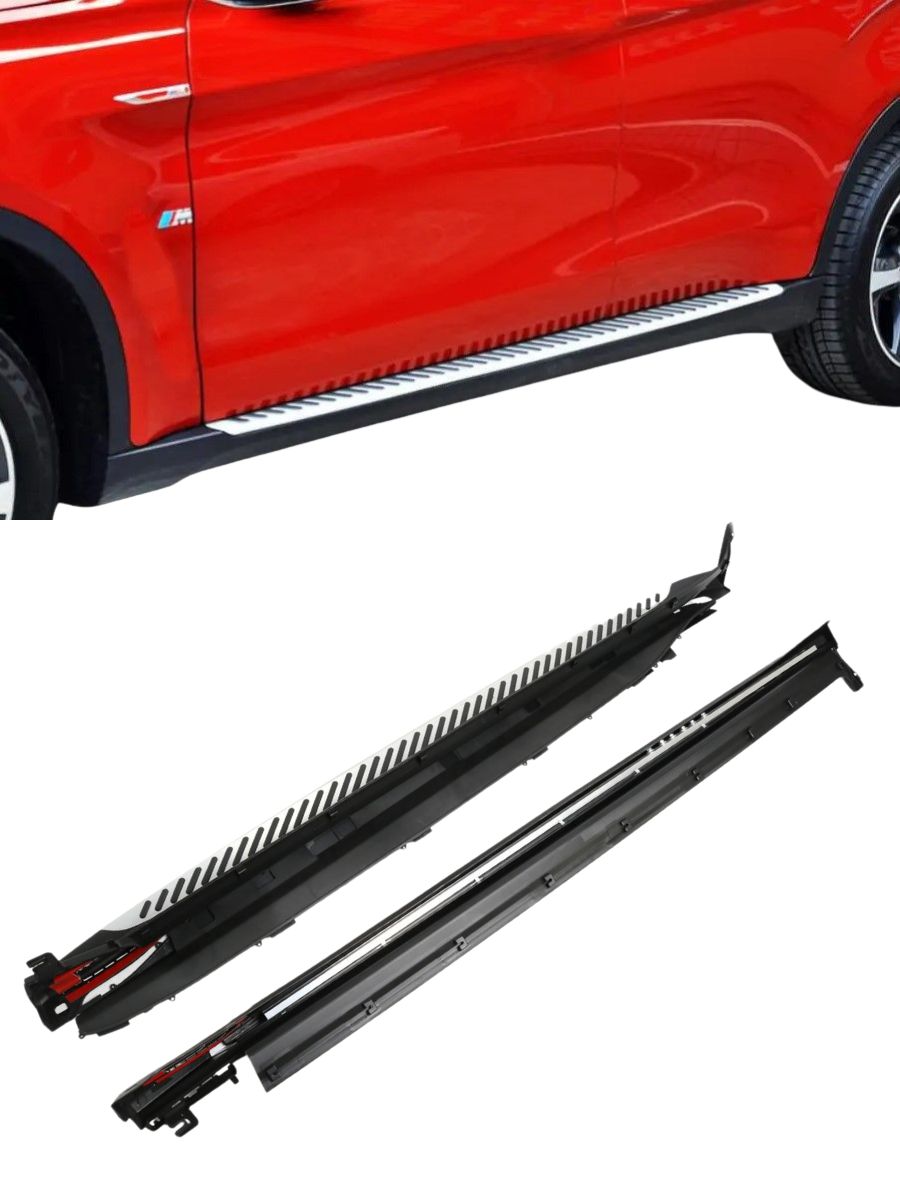 BMW X4 G02 (2018+) е модерен премиум SUV, който съчетава елегантност, спортен дух и комфорт. За да подчертаете този характер и да увеличите практичността на автомобила, степенките са задължителен аксесоар. Те осигуряват удобно качване и слизане, предпазват страничните прагове от удари, кал и механични наранявания, като едновременно с това придават завършен и спортен вид на автомобила. Изработени от здрав алуминий и висококачествена ABS пластмаса, тези степенки са създадени за дълготрайна употреба и устойчивост на екстремни условия.