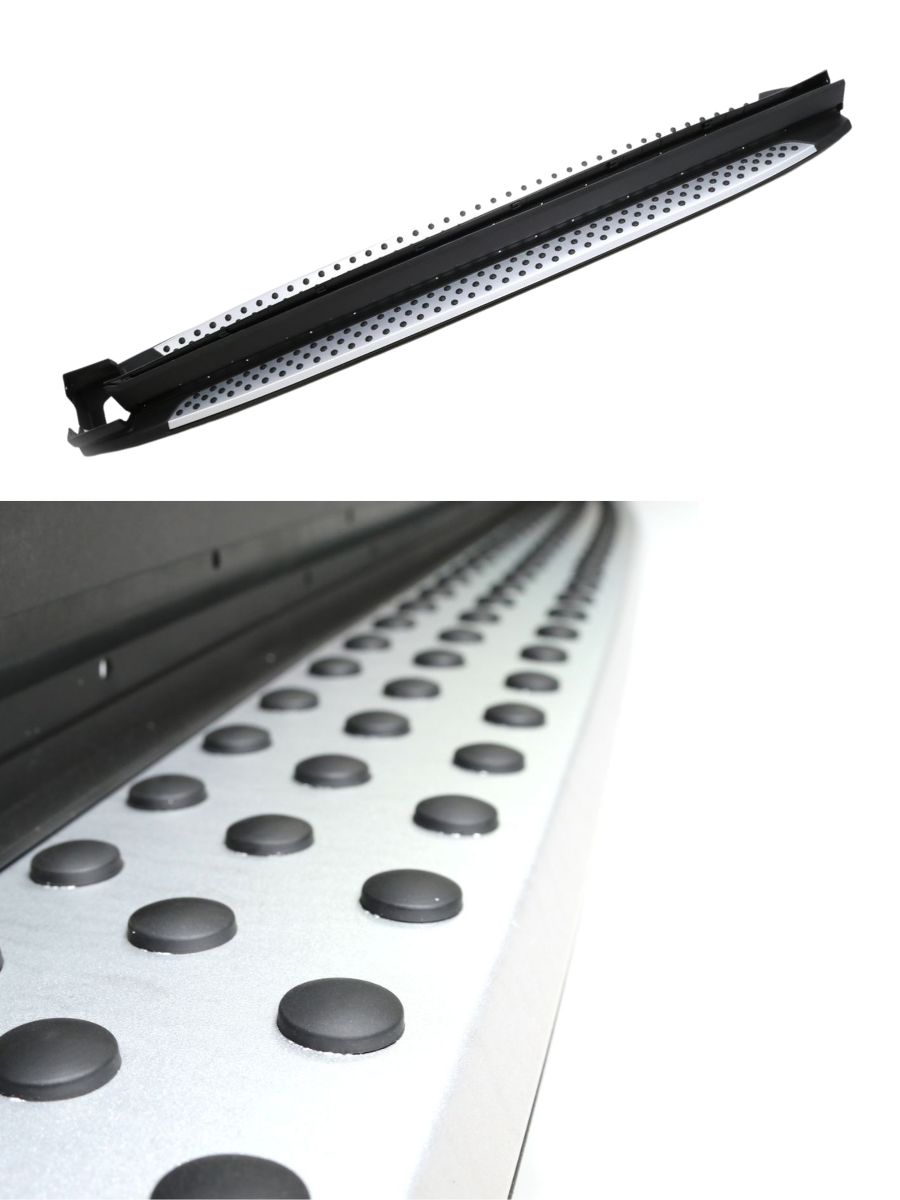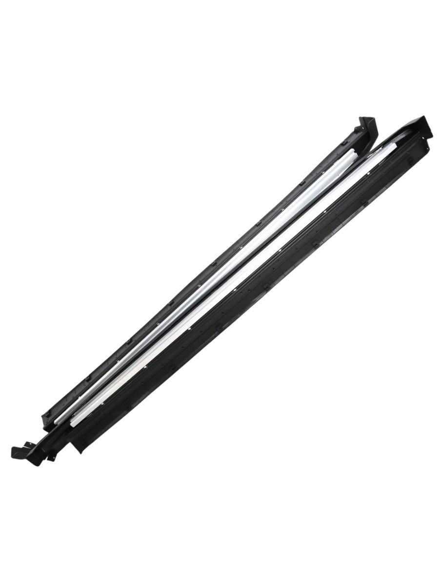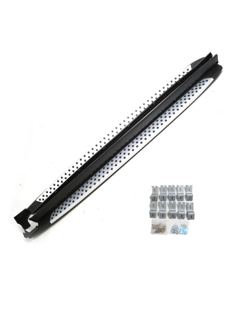 Комплектът включва степенки за лявата и дясната страна на автомобила, както и всички необходими крепежни елементи за лесен монтаж. Те са съобразени с заводските точки на Hyundai Santa Fe (2018+) и не изискват модификации или пробиване на допълнителни отвори. Така монтажът е бърз, сигурен и гарантира OEM качество и пасване.