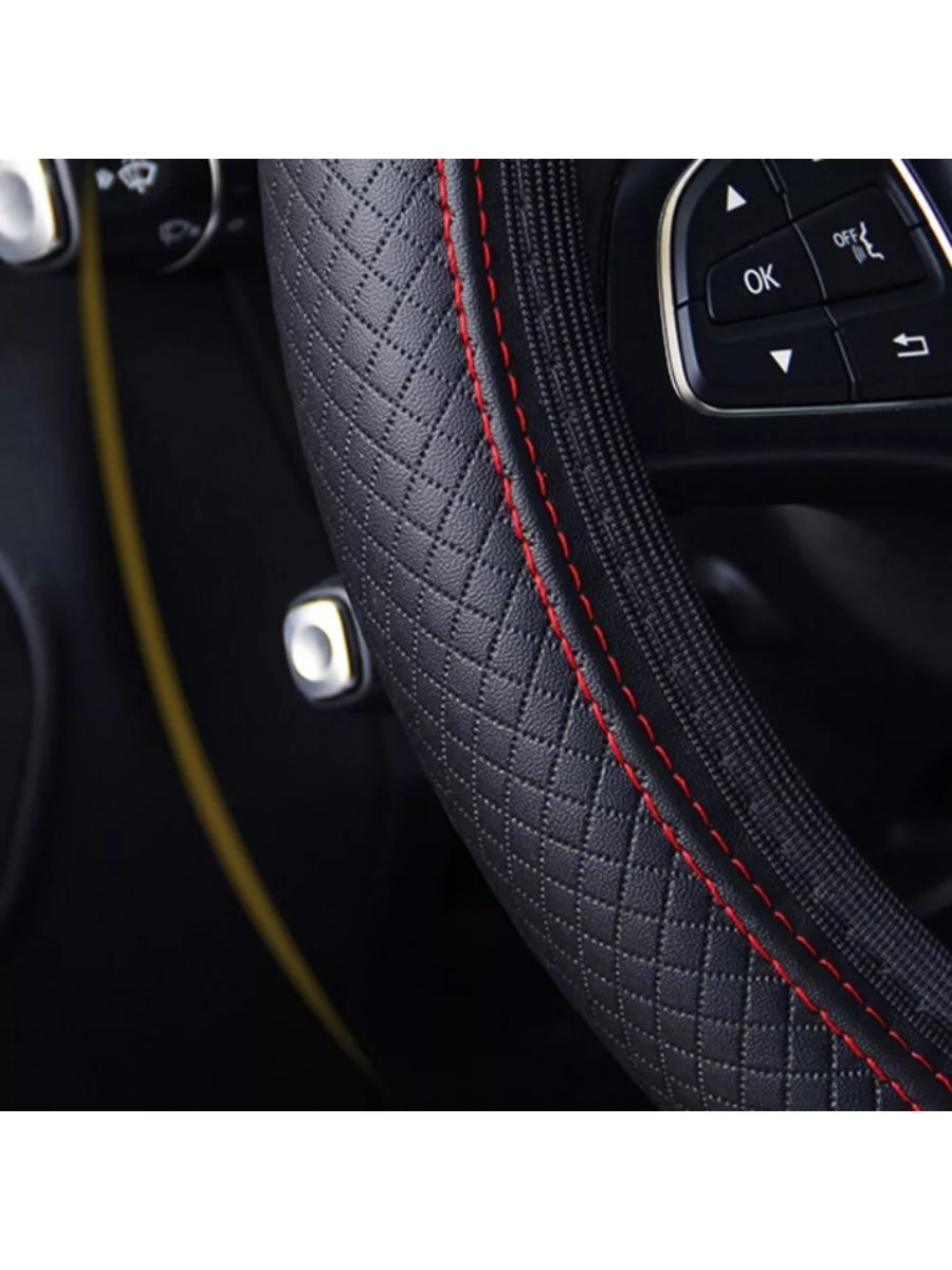 Ако търсите надежден и стилен начин да защитите и освежите вашия автомобилен волан, този универсален кожен калъф с червени шевове е идеалният избор. Той съчетава комфорт, защита и спортно излъчване, подходящ за всяко превозно средство с диаметър на волана 37–38 см.