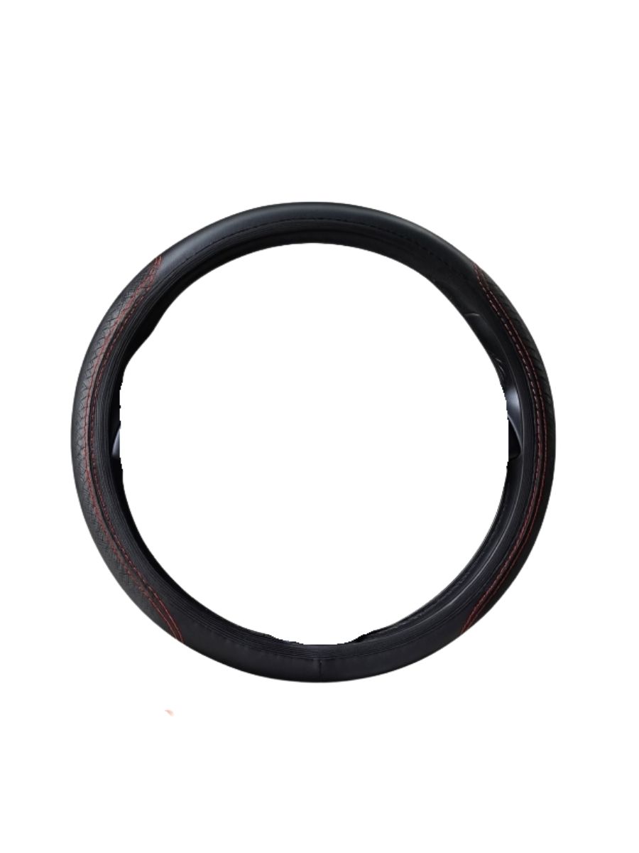 Универсален кожен калъф за волан -Черен с червени шевове 37-38 см