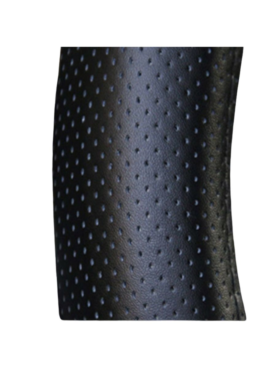 Този универсален перфориран калъф за волан от еко кожа е създаден да осигури максимален комфорт, здравина и стил за вашия автомобил. Подходящ е за волани с диаметър 37–38 см и е идеален избор за автомобили, бусове, джипове и SUV модели. Перфорацията позволява на материала да „диша“, като предотвратява запарване на ръцете и осигурява приятно усещане по време на шофиране. Благодарение на универсалния дизайн и качествената изработка, калъфът е лесен за поставяне, прилепва плътно към волана и го предпазва от износване и замърсяване.