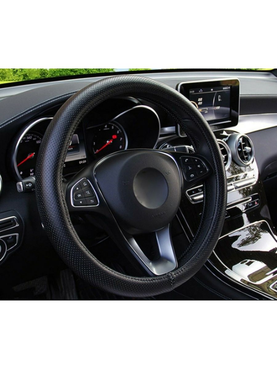 Универсален перфориран калъф за волан – черен, еко кожа за автомобил, бус, джип и SUV