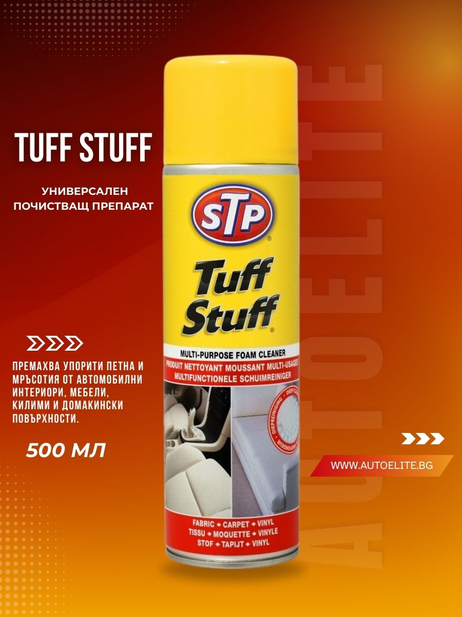 STP Tuff Stuff 500 мл е универсален почистващ препарат с мощна пяна, който премахва упорити петна и мръсотия от автомобилни интериори, мебели, килими и домакински повърхности.