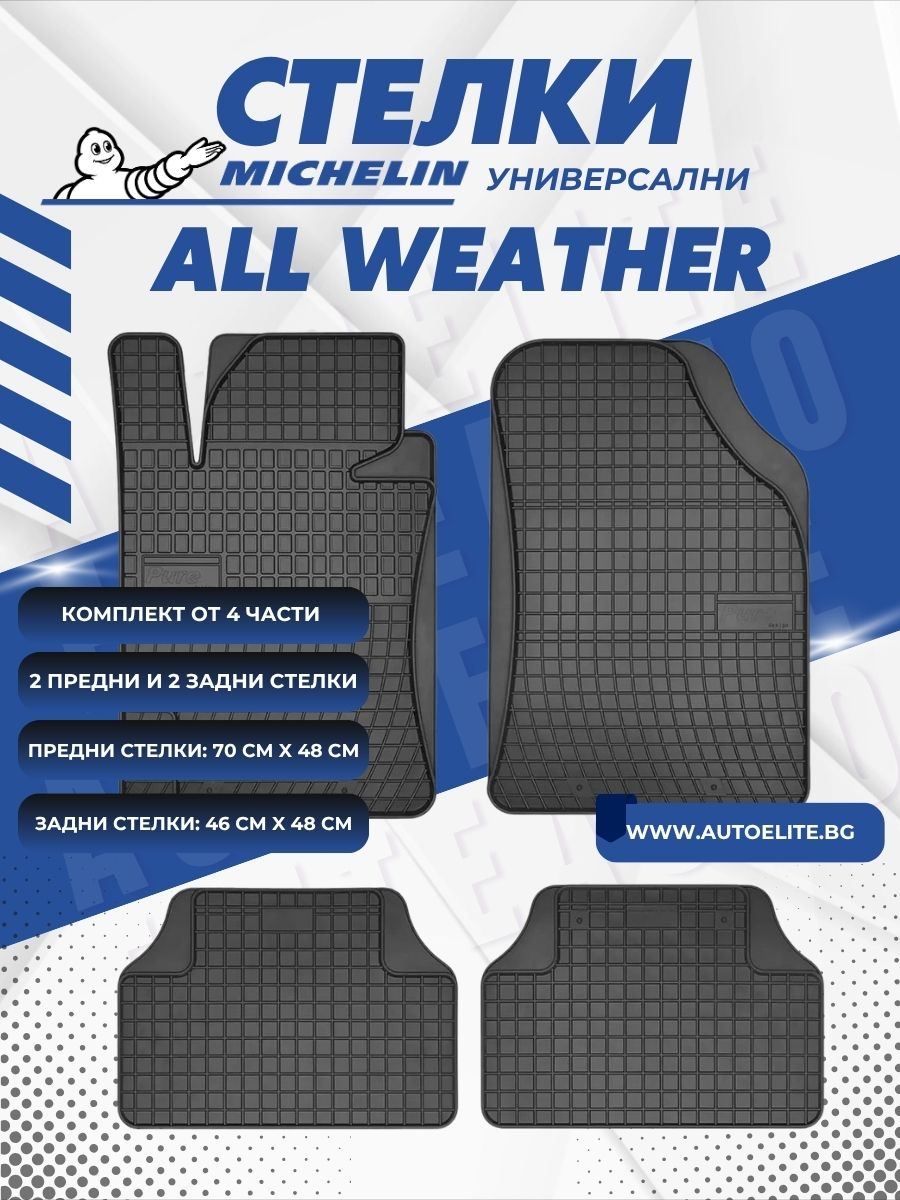 Не позволявайте калта и влагата да повредят автомобила ви! Поръчайте Универсални автомобилни стелки Michelin All Weather от AutoElite.bg днес и шофирайте с увереност!