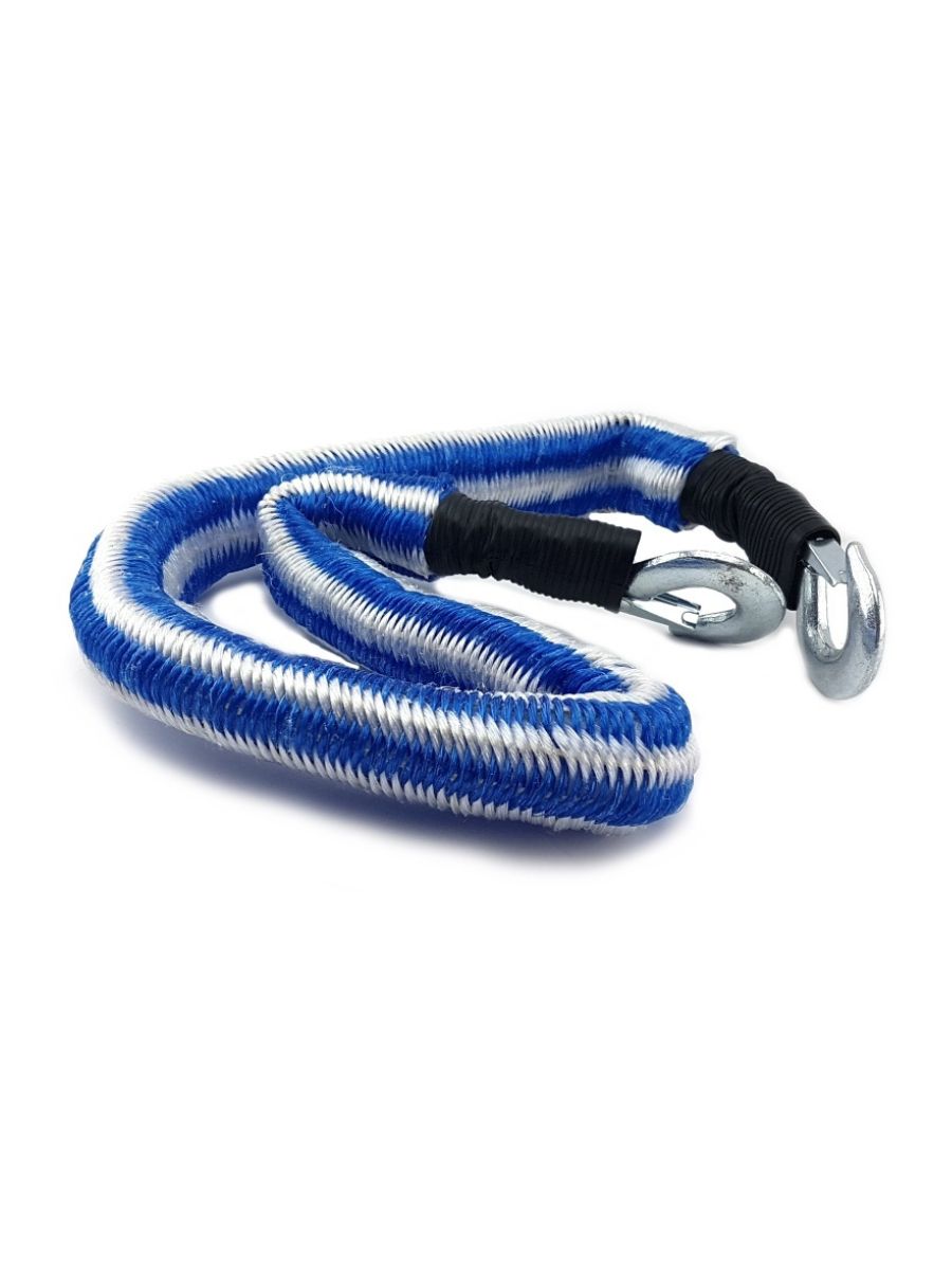 Изработено е от висококачествени синтетични влакна с висока издръжливост на опън и износване. Оборудвано е с усилени куки за бързо и сигурно закрепване. Компактно и леко, въжето се съхранява лесно в багажника и е задължителен аксесоар във всяко превозно средство.