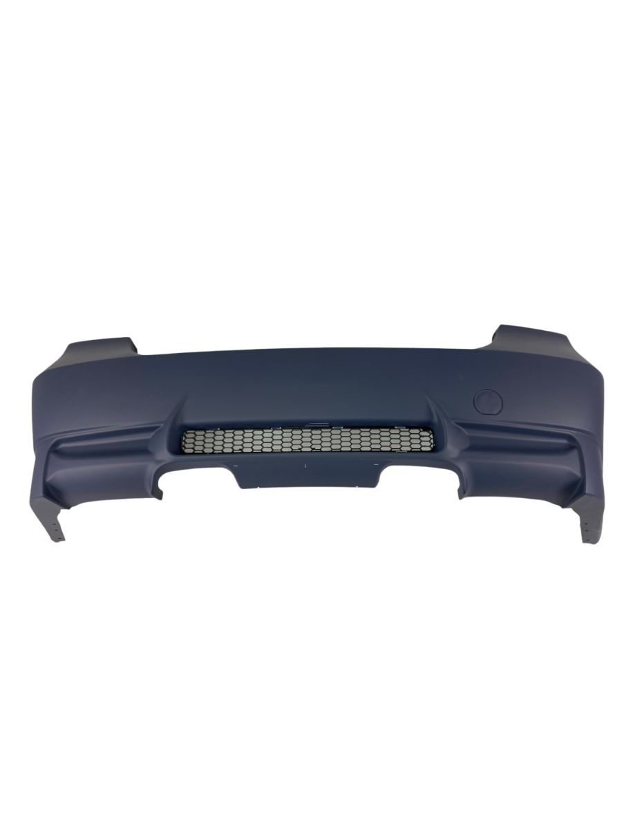 Задната броня е проектирана по мотиви от M3 дизайна, което я прави перфектен избор за всеки, който иска по-спортна визия без компромис с качеството и функционалността. Тя е изработена от устойчив ABS материал, известен със своята еластичност и устойчивост на удари, климатични условия и пътни влияния.