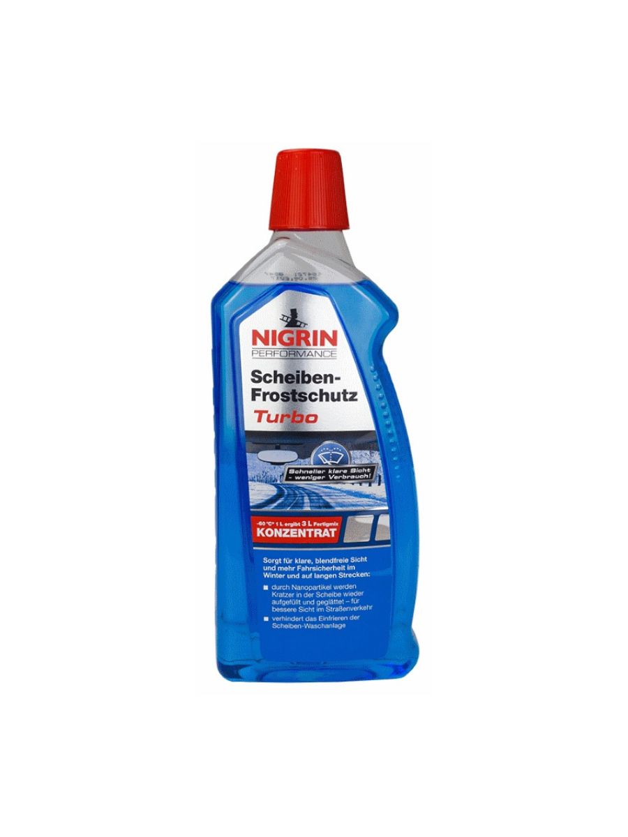 NIGRIN Зимна течност за чистачки -60°C в разфасовка от 1 литър е висококачествен концентрат, разработен за надеждно почистване на автомобилните стъкла и фарове при тежки зимни условия.